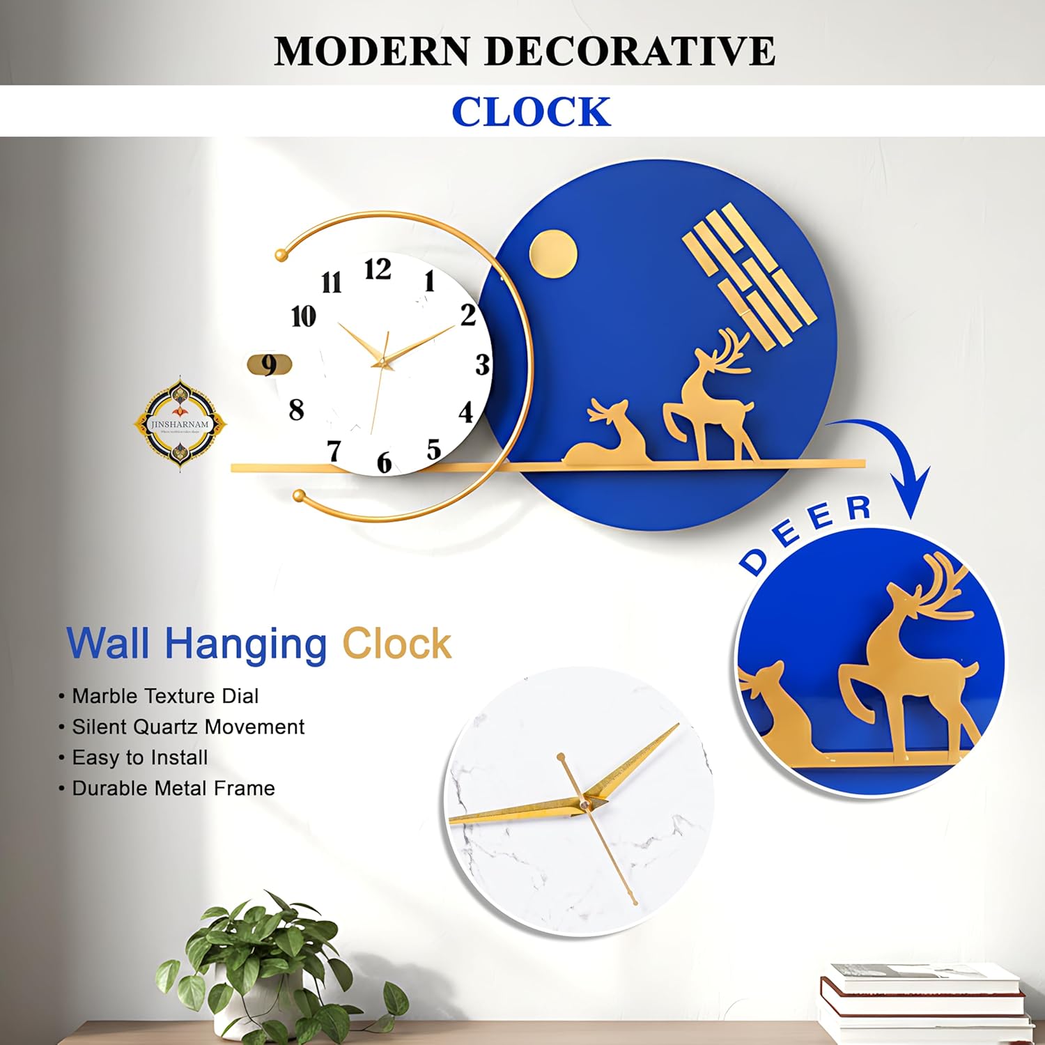 Handcrafted metal frame with golden finish for premium look.
