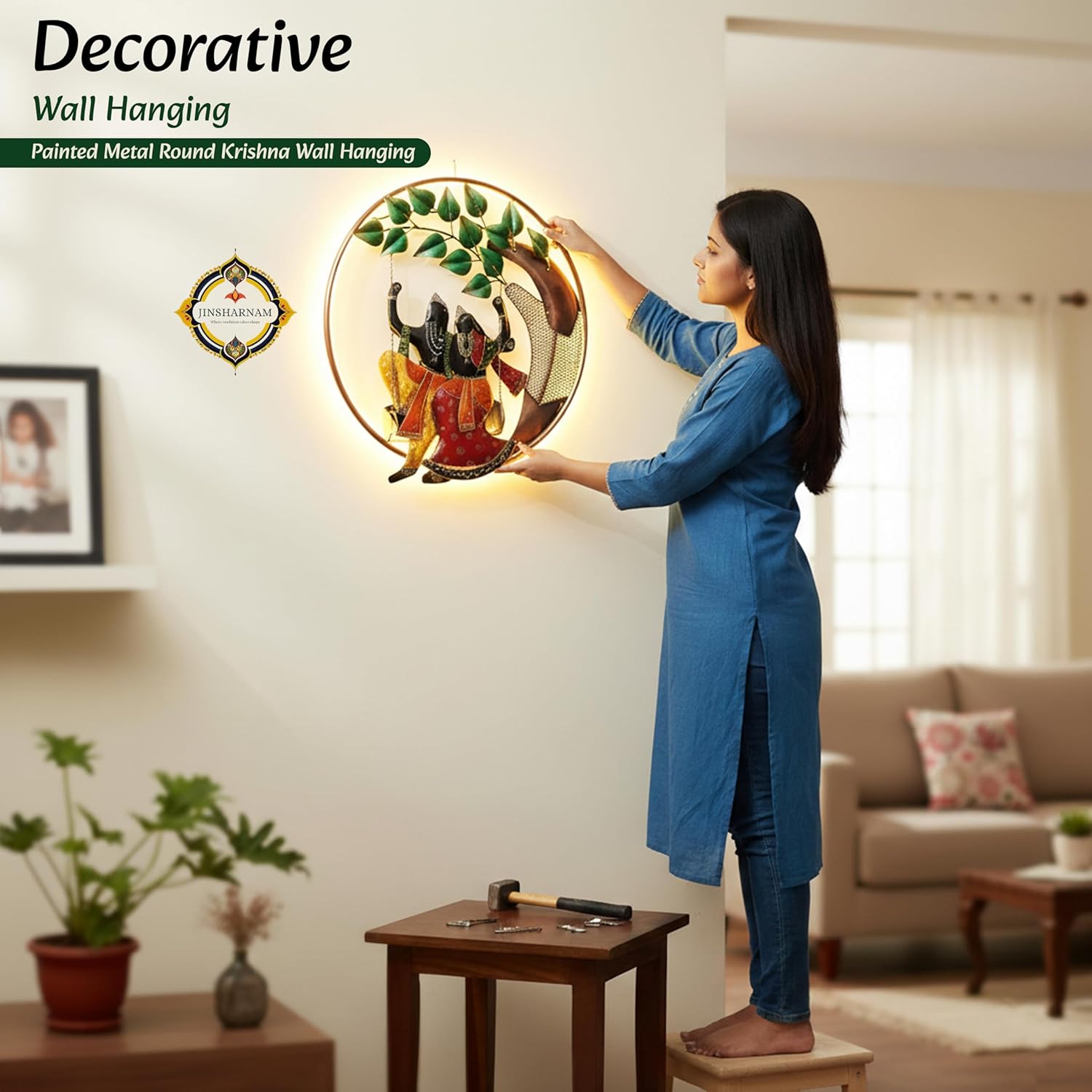 Divine Radha Krishna design with warm LED glow