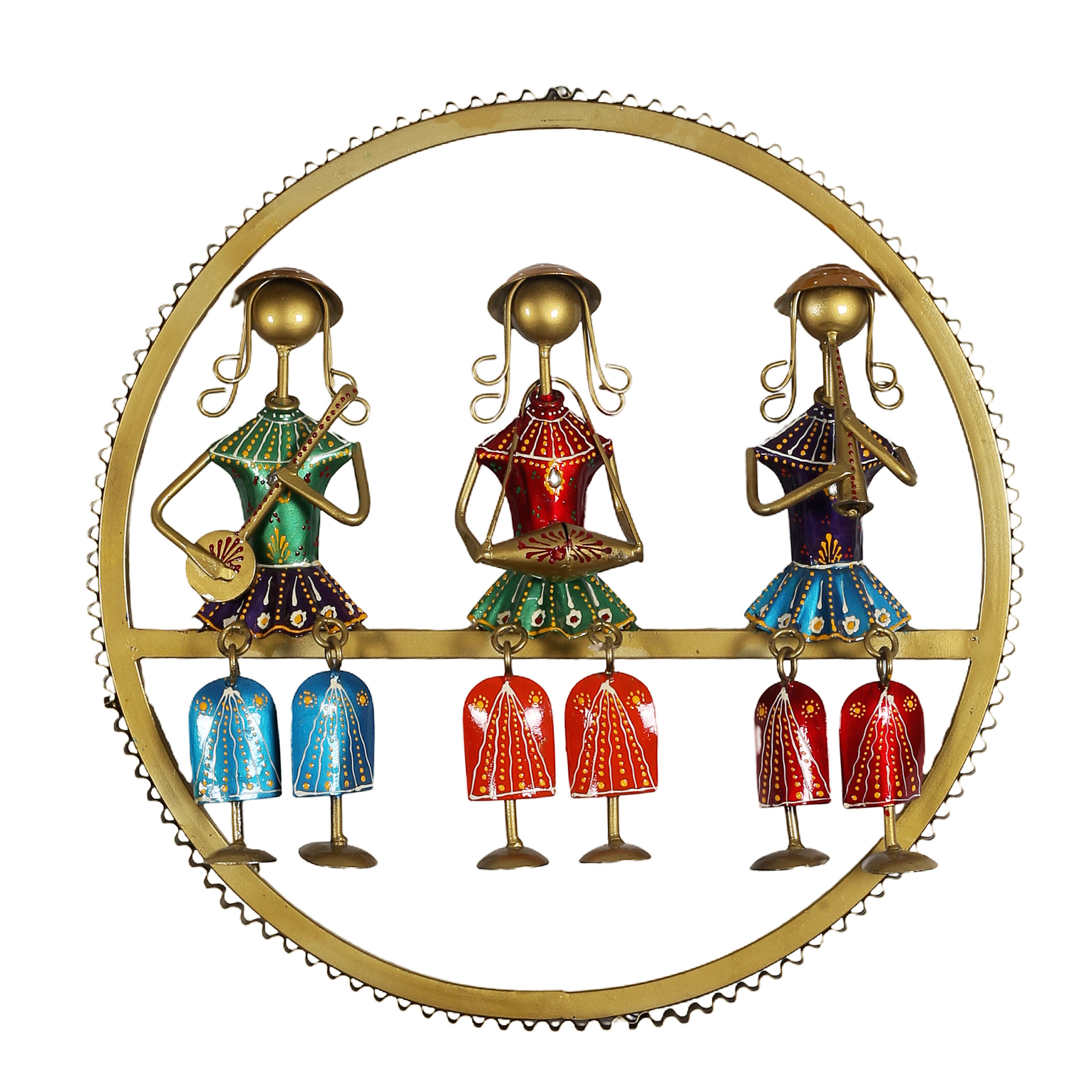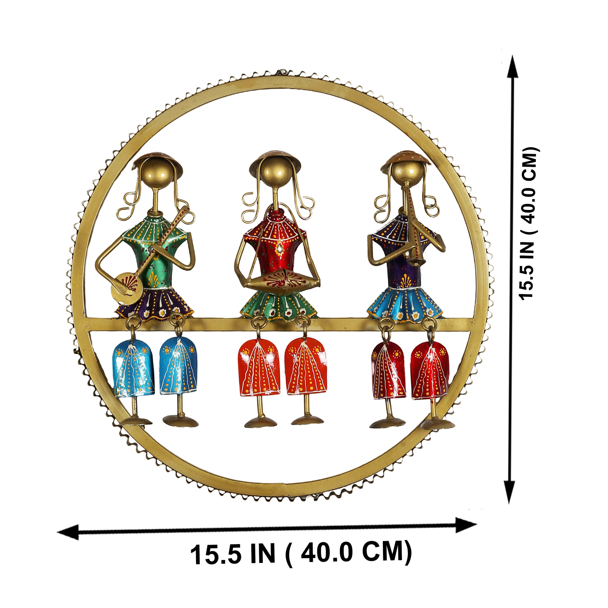 INSHARNAM Handcrafted Metal Musician Circle Wall Hanging Showpiece – Set of 3 Decorative Showpiece
