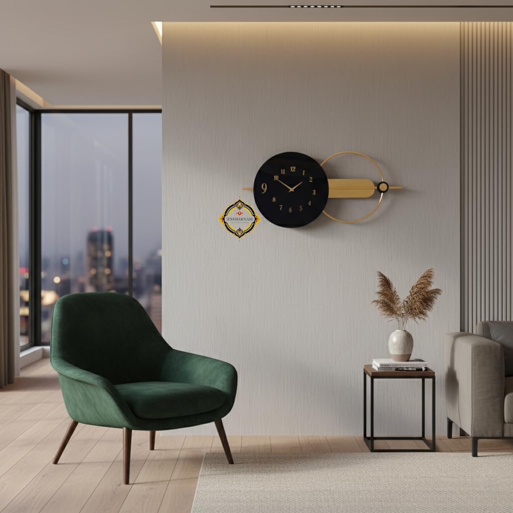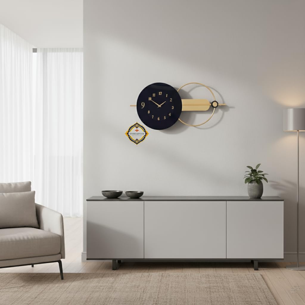 Modern Aura Black & Gold Designer Acrylic and Metal Wall Clock